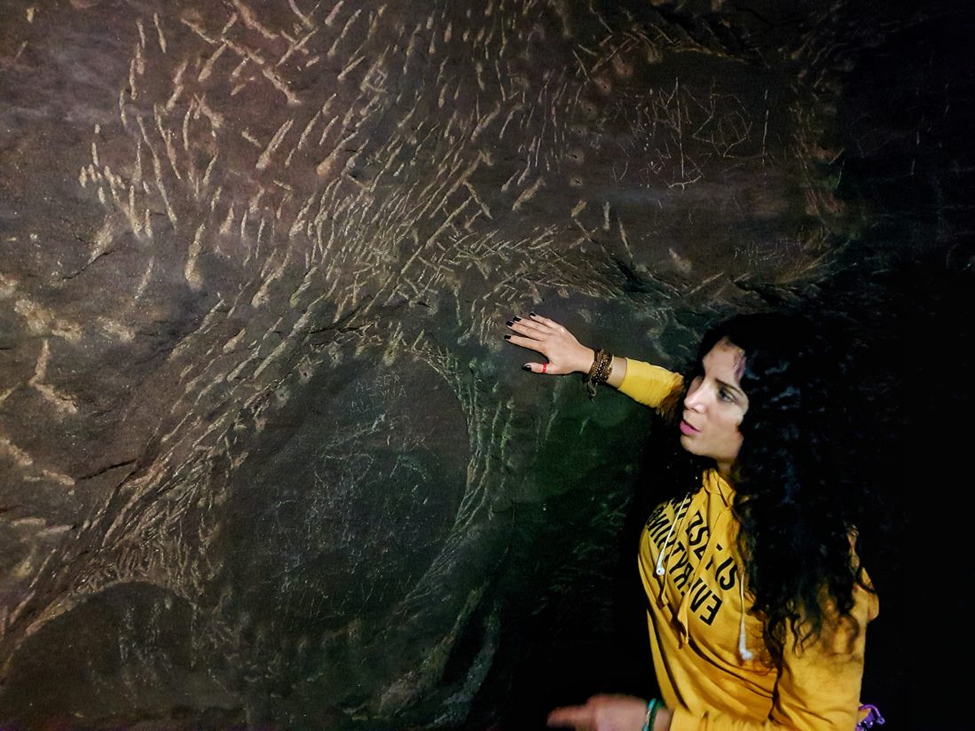 Pileki Mağarası’na vardığımızda yağmur daha da şiddetleniyor. Arabanın içinden mağaraya ilk baktığımda, tepesinden dökülen şelale dikkatimi çekiyor. Yol boyu mağaranın doğal değil yapay bir mağara olduğunu anlatmışlardı. Bölgeye has Pileki denilen, ekmek pişirmekte kullanılan taştan tablaları bu mağarada yapıyorlarmış. M.Ö 2300 yıllarından 1970 yılına kadar mağaradan devamlı taş tablalar çıkarılmış. Zamanla da kocaman bir mağaraya dönüşmüş.